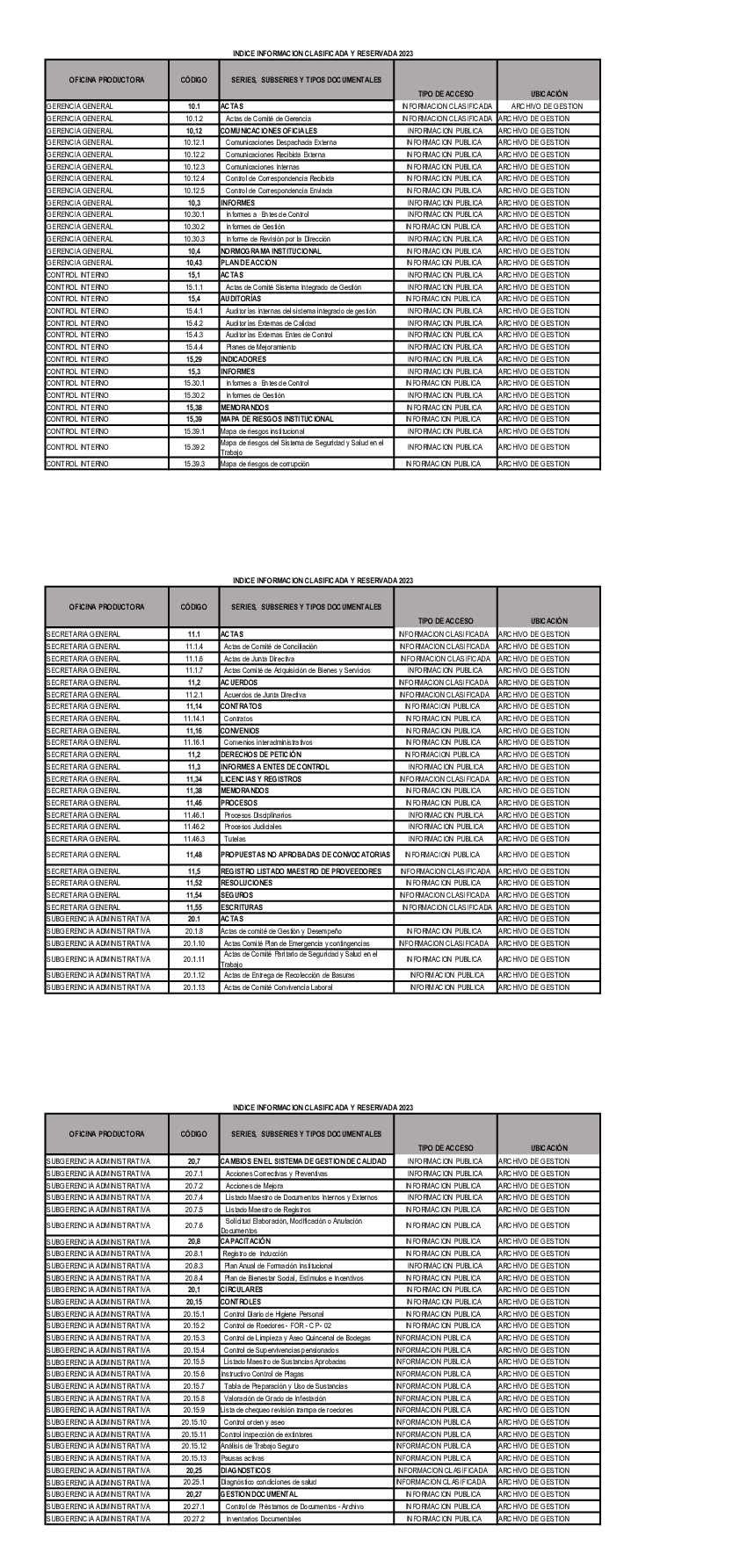 indice informacion clasificada y reservada - 2023