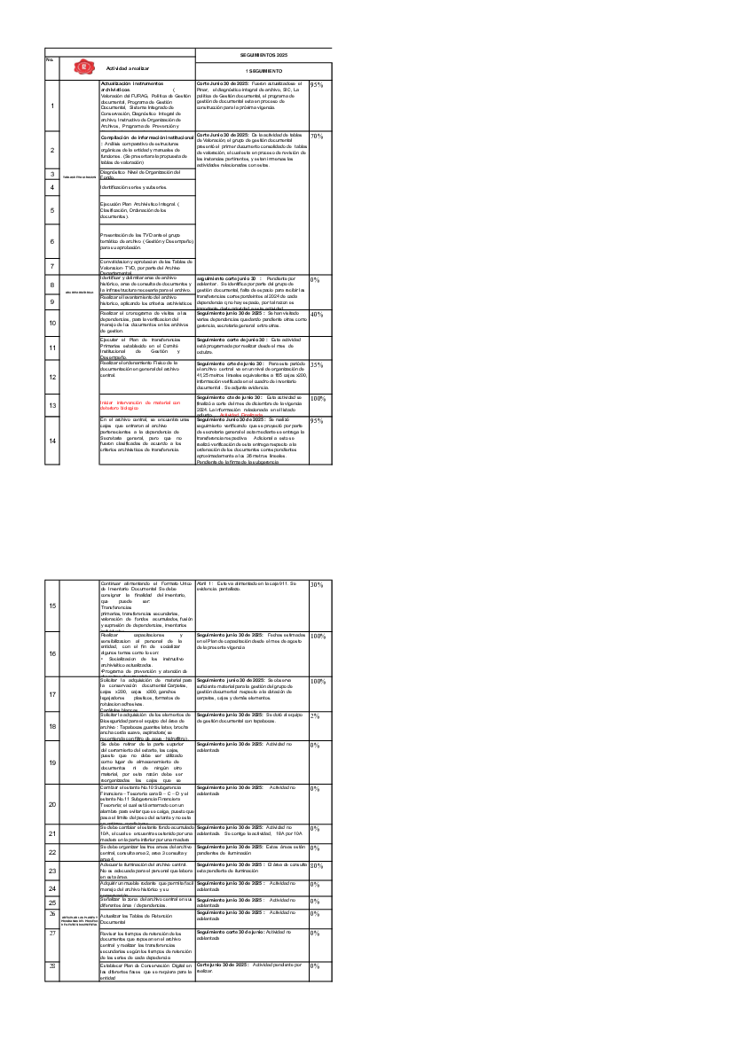 seguimiento plan de mejoramiento archivistico 2025